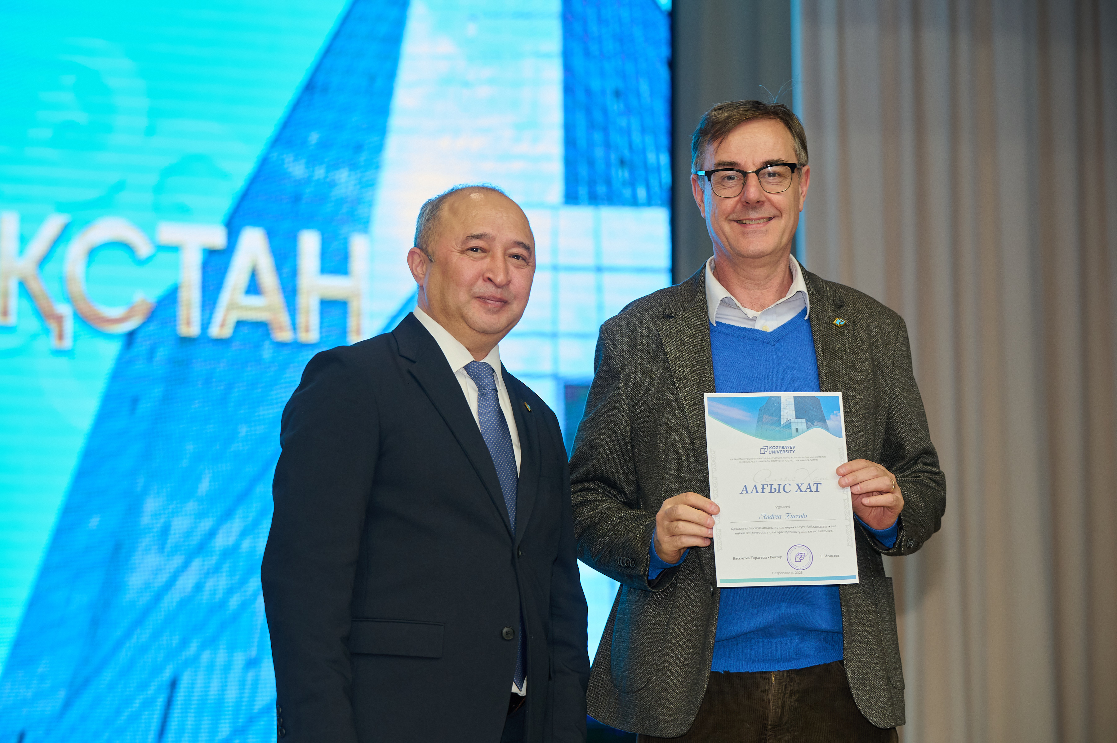 Қоршаған ортаны қорғау саласындағы белсенді және жемісті жұмысы үшін ҚР Экология және табиғи ресурстар министрлігінің «Экология саласының үздігі» төсбелгісімен «Биология» кафедрасының аға-оқытушысы Иван Зубань, «География және экология» кафедрасының аға-оқытушысы Зауре Искандирова марапатталды.
