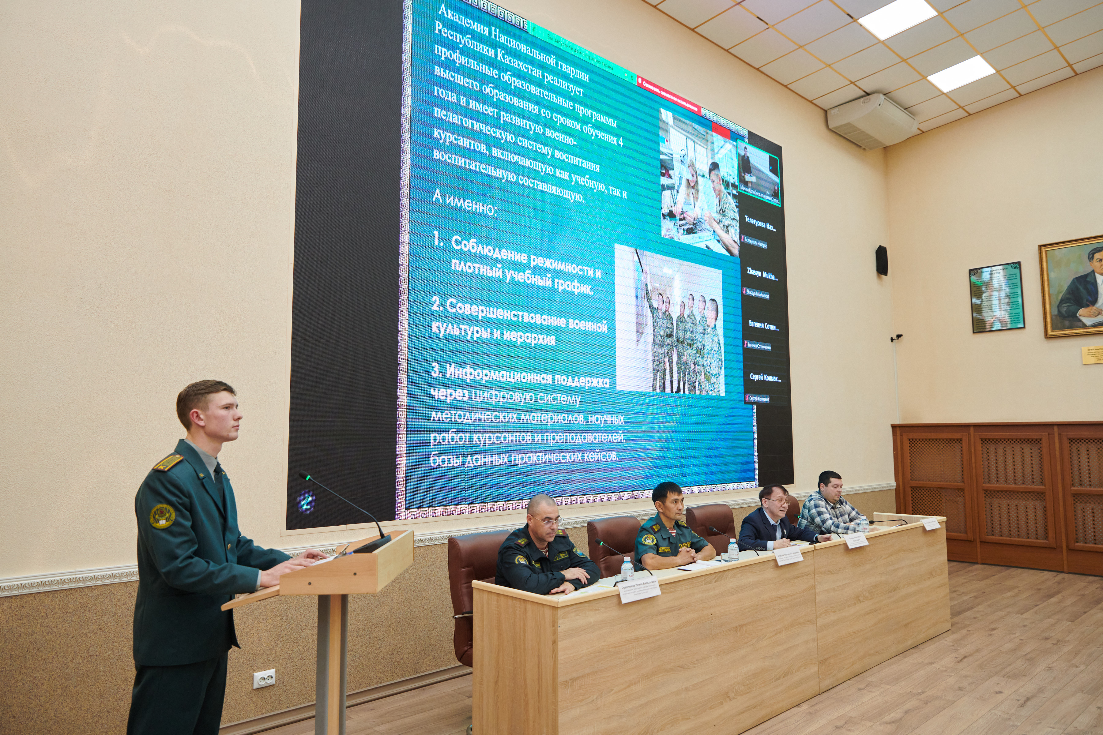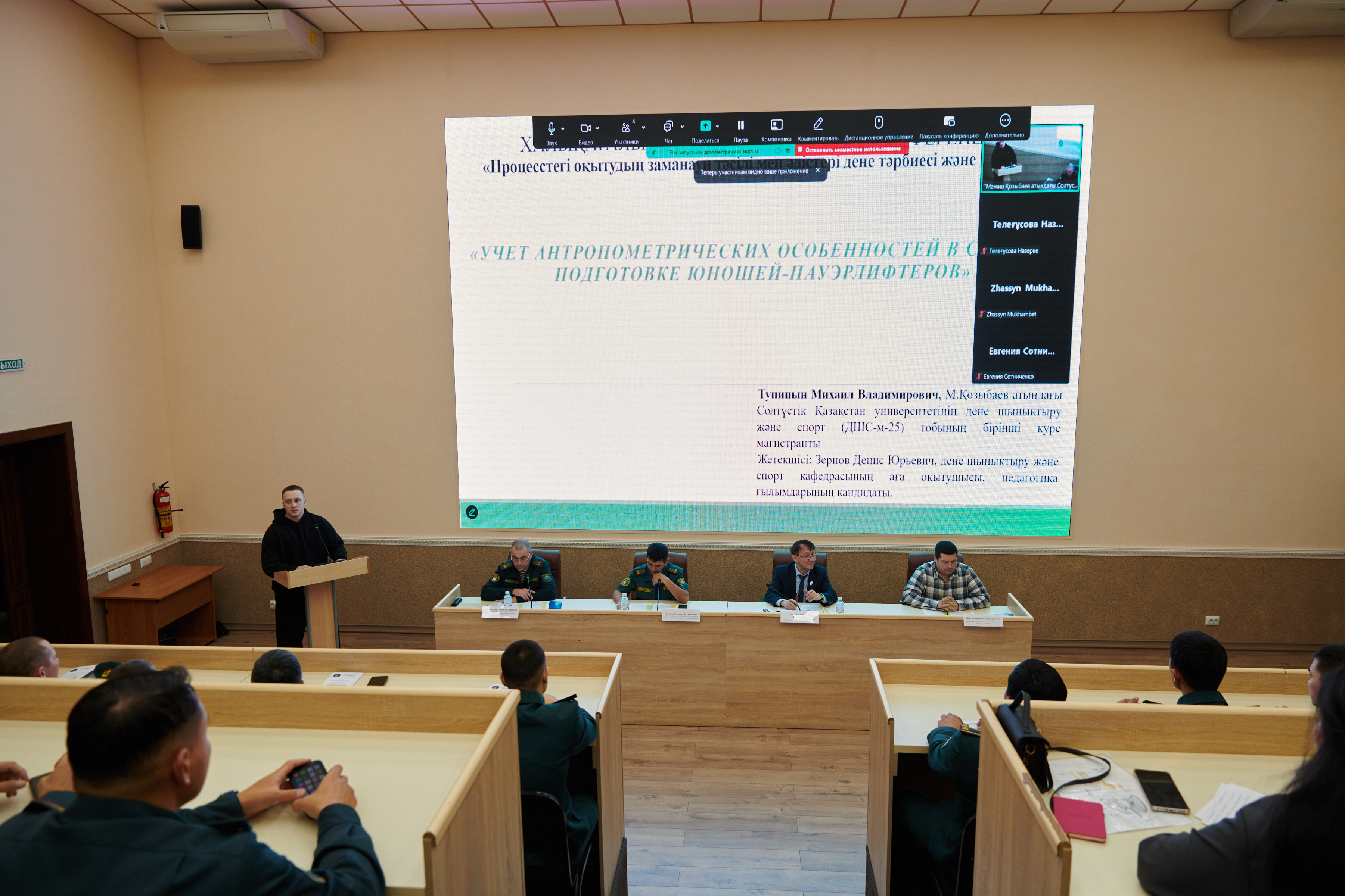 Іс-шараға екі жоғары оқу орнының студенттері мен курсанттары қатысты. Тәжірибелі педагог-тәлімгерлердің жетекшілігімен білім алушылар ЖОО-да дене шынықтырудың өзекті тақырыптары бойынша баяндамалар дайындады: АӘД сабақтарында жалпы білім беретін мектепте тәжірибеге бағдарланған тапсырмаларды қалыптастыру, күш дайындығындағы ерекшеліктерді есепке алу, дене тәрбиесін цифрландыру, курсанттарды дене шынықтырумен айналысуға ынталандыру және т.б.