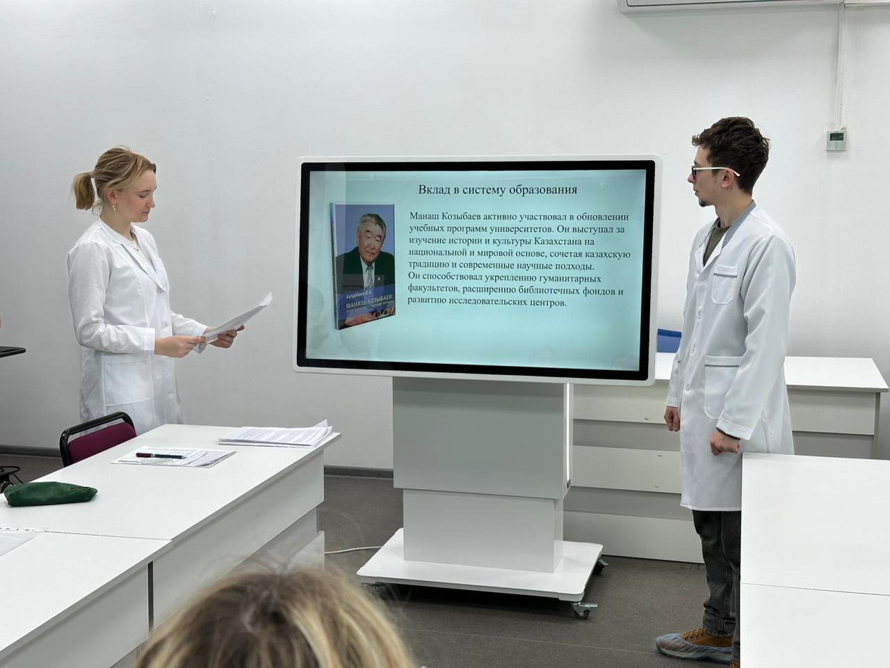 Круглый стол «Роль Манаша Козыбаева в развитии гуманитарного образования в Казахстане», посвящённый дню рождения выдающегося казахстанского учёного-гуманитария Манаша Козыбаева был проведен 14.11.2025 года на медицинском факультете. Участие в нём приняли преподаватели факультета и студенты группы фарм 25.