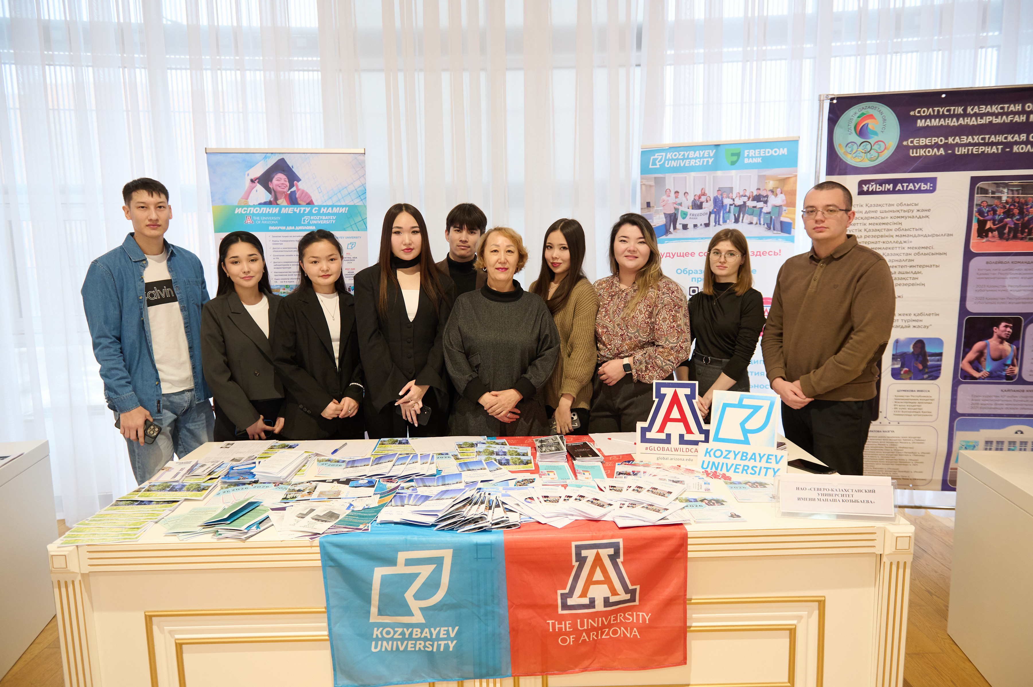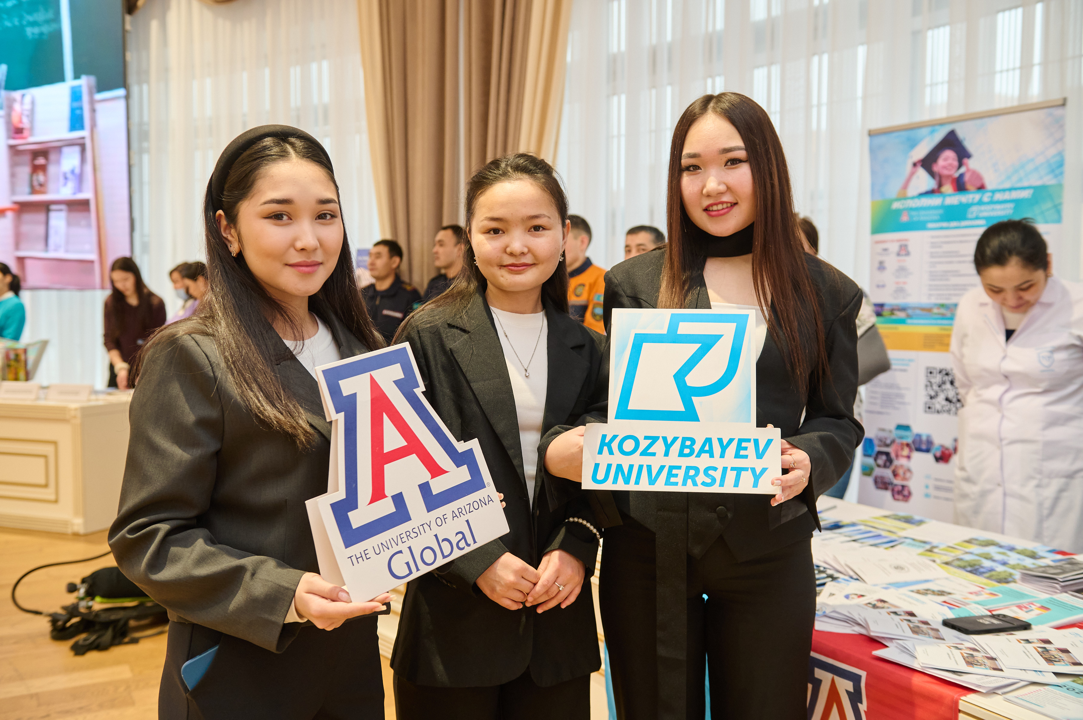 Жоғары оқу орнымыздың өкілдері Аризона университетімен қос диплом бағдарламалары, факультеттер, дайындық бағыттары туралы айтып, тілдік тестілеуді тапсыру ережелерімен таныстырды. Мұның бәрі талапкерлерге заманауи еңбек нарығының талаптарын бағдарлауға көмектеседі.