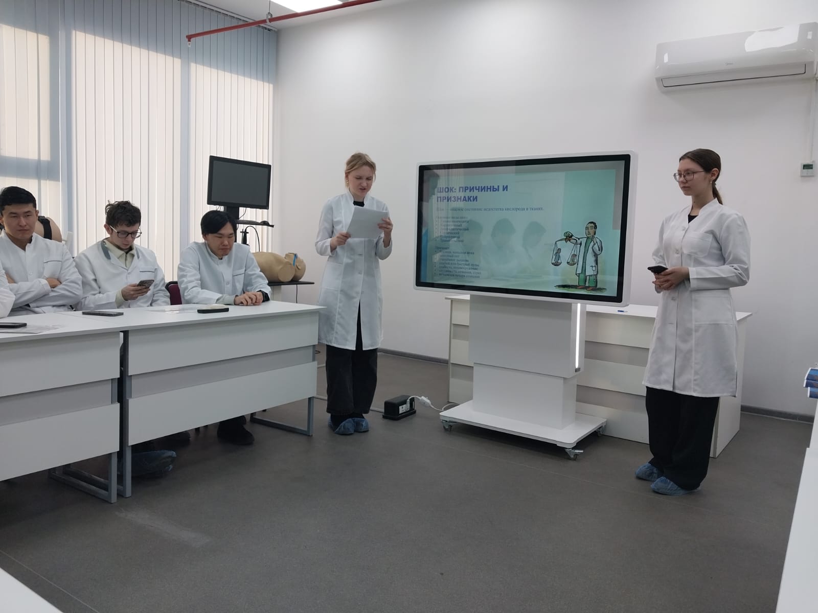 12 декабря 2025 года, в рамках реализации плана научных мероприятий медицинского факультета на 2025–2026 годы, был проведён практический семинар с группами фарм-23 и фарм-25 по теме «Международные стандарты первой доврачебной помощи». Семинар был ориентирован на повышение уровня профессиональной подготовленности студентов и формирование практических навыков, соответствующих современным международным требованиям в сфере оказания первой помощи.При подготовке семинара студенты провели анализ эффективных международных алгоритмов оказания помощи и разработали буклеты алгоритмов по основным неотложным состояниям, которые могут быть использованы при профилактической работе с различными группами населения.