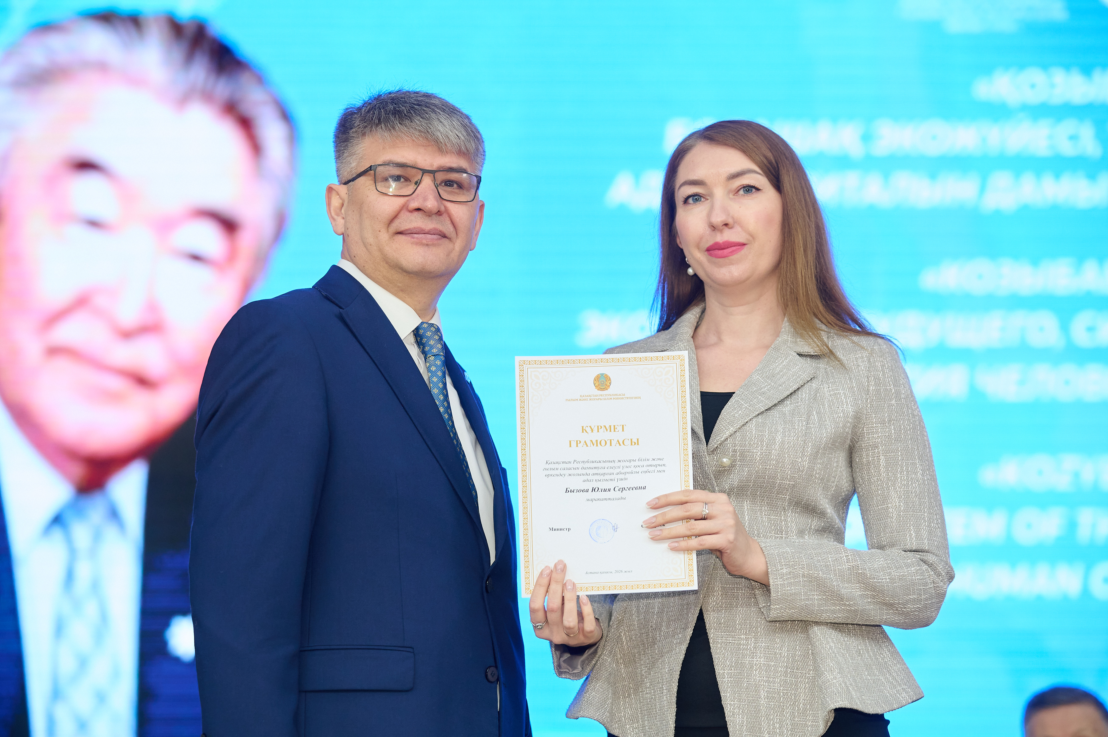 Қазақстан Республикасы Ғылым және жоғары білім Министрлігінің құрмет грамотасы: