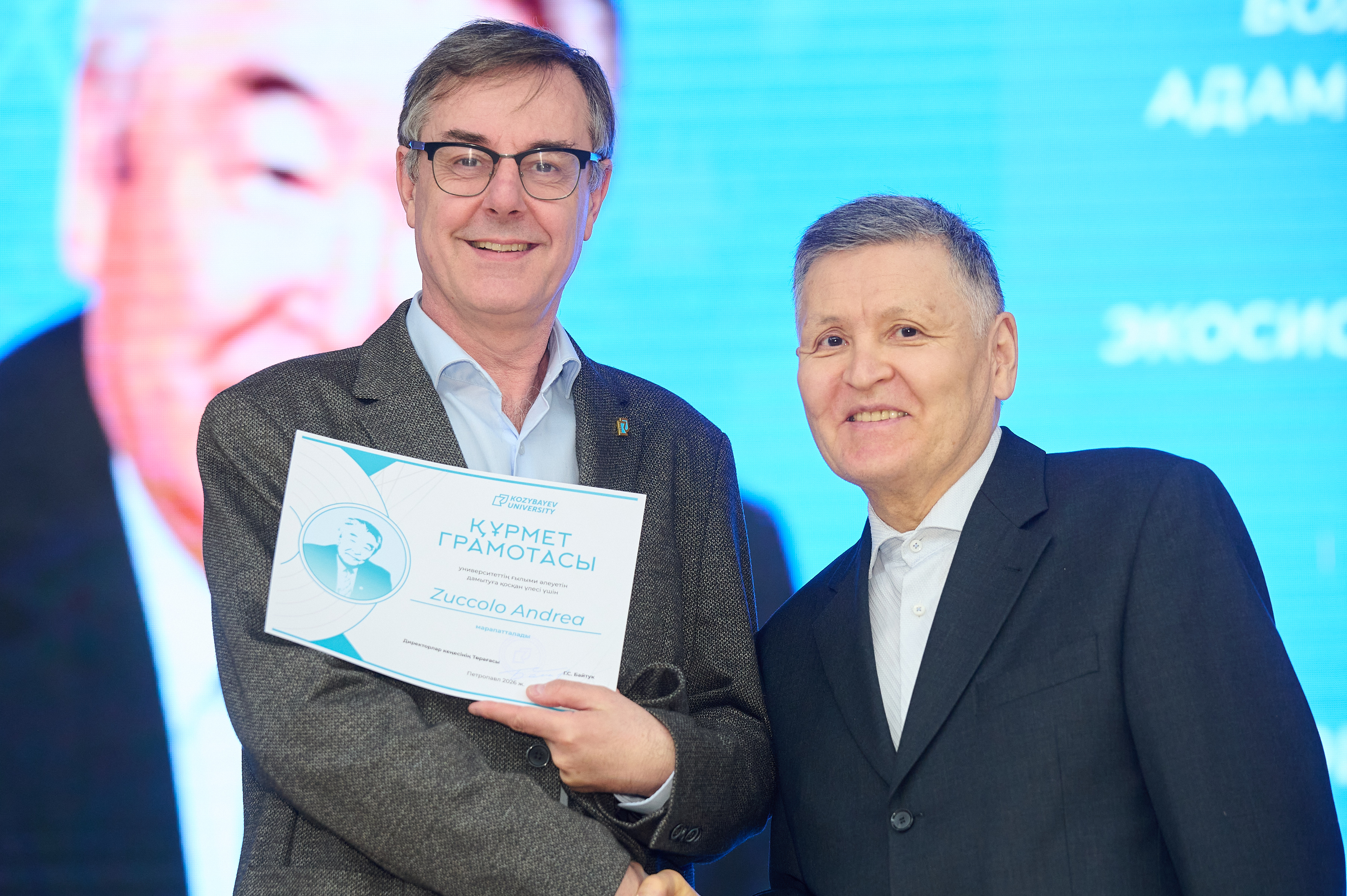 Қозыбаев оқулары-2026 іс-шарасында ЖОО-да ҚР Ғылым қызметкерлері күніне арналған салтанатты марапаттау рәсімі өтті. Ғалымдар, педагогтар, қызметкерлер, ЖОО серіктестері және білім алушылар марапатталды: