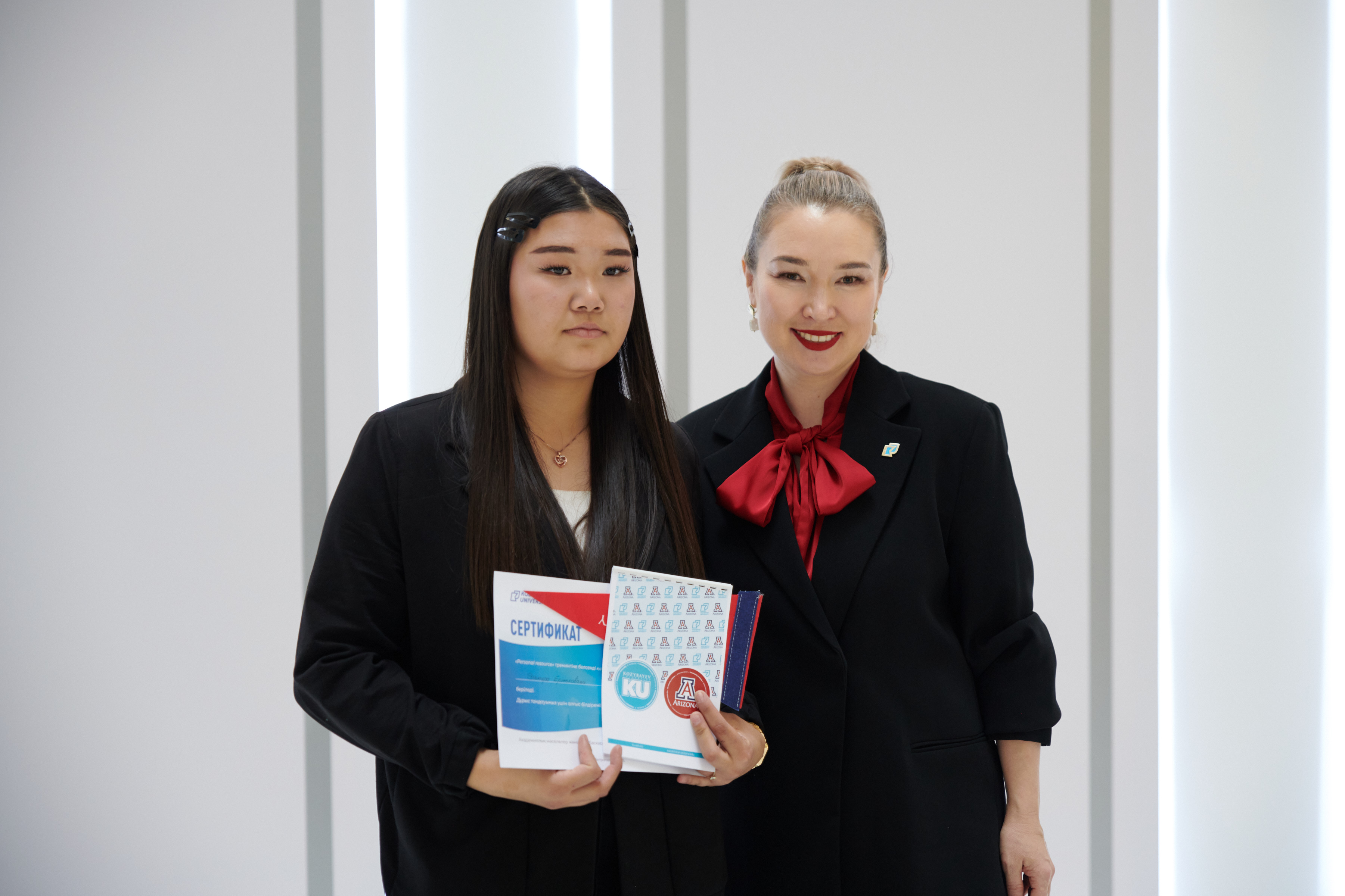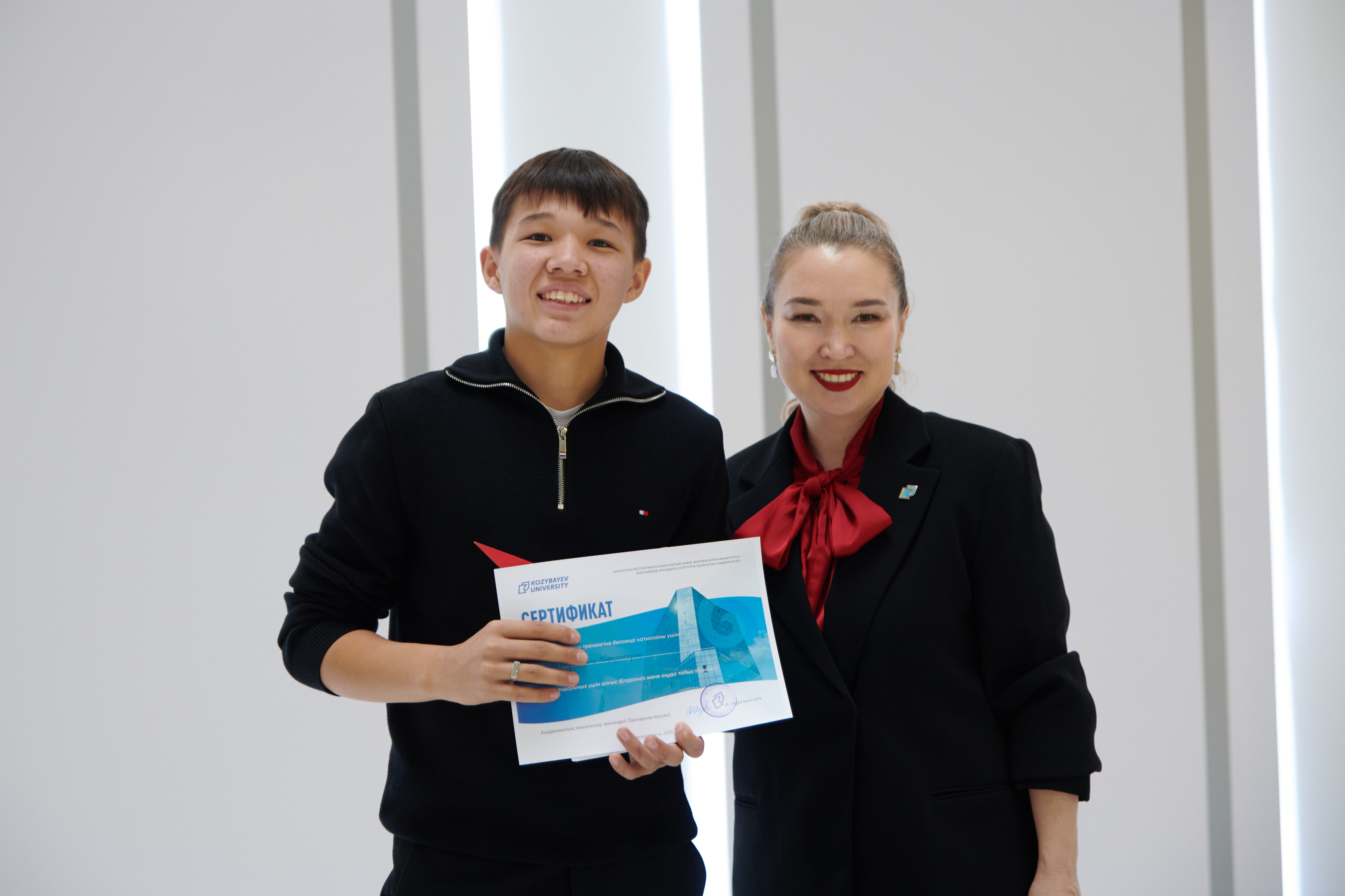ЖОО студенттері оқушыларға зейіні мен зердесін шыңдайтын интерактивті ойындар ойнатты. Талапкерлер ойынға қызыға қатысты. Кеш соңында белсенді қатысушылар университеттің брендтік сыйлықтарын алды.