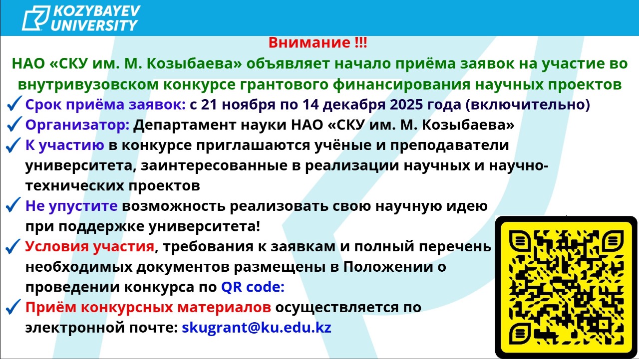 О начале приема заявок на участие во внутривузовском конкурсе грантового финансирования научных проектов