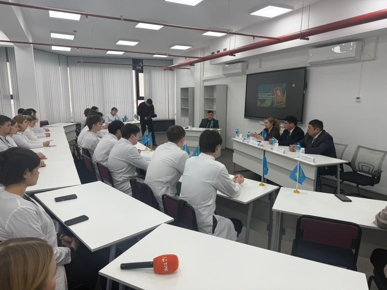 Пікірталасқа академиялық мәселелер жөніндегі проректор Нұрпейісова А.Х., №1 аурухананың бас дәрігері Тасов Р.К., облыстық сот сараптамалары орталығы филиалының басшысы Мұқанов Е.Е., медицина факультетінің студенттері қатысты. Медицина факультетінің директоры Серік Бахтияр референдумға қатысу – бұл тек құқық қана емес, сонымен қатар мемлекеттің болашағы үшін жауапкершіліктің көрінісі екенін атап өтті.
