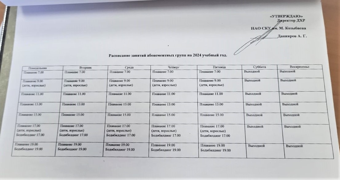 - The provision of paid fitness services to legal entities and individuals (population), in accordance with the current Charter of the Republican State Enterprise on the Right of Economic Management of M. Kozybayev NKU from 08.24.2012