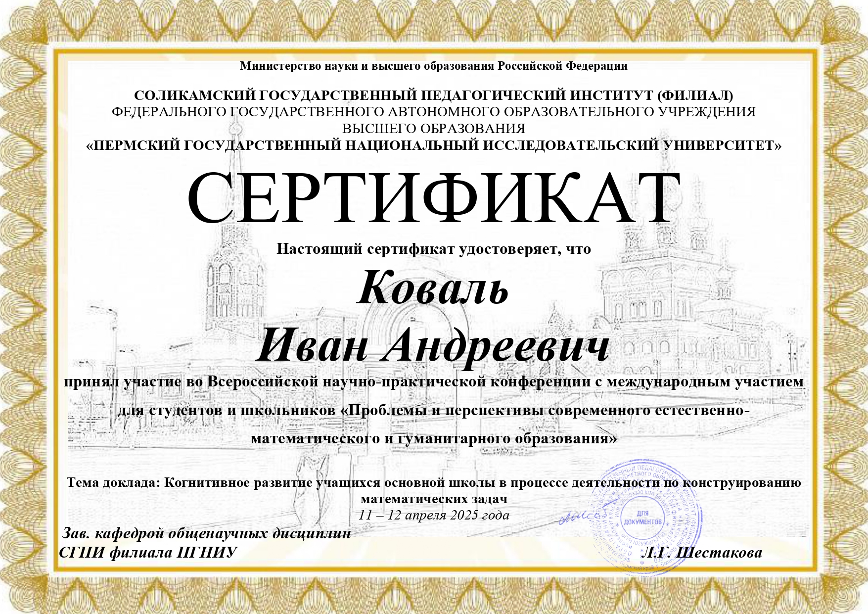 - Сертификат за участие в 16-й республиканской предметной олимпиаде, 2024 г.